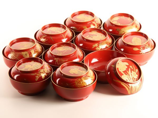 画像参照 椀六客、蓋五客小当たり、蒔絵剥がれ蓋一客あります*経年の汚れ等はご承知下さい。*