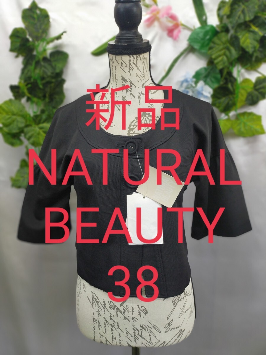 - 新品タグ付 ナチュラルビューティ ノーカラージャケット 38 Mポンチ素材 黒