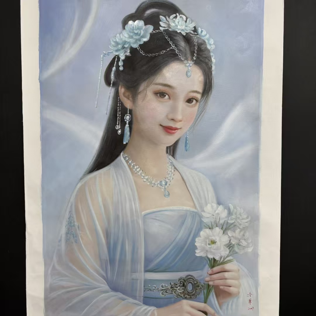 - 油彩 絵画 早期收集 y3 『 寒軍 美女 美人画』手描き布油絵 油畫 旧藏 中国古画 純手描き画 古美術品 時代物 中国古玩 骨董品 925