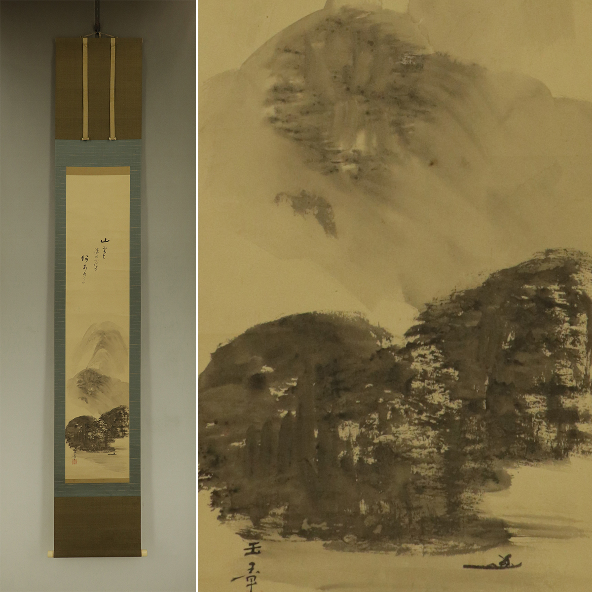 - 【真作】川端玉章【山水画賛】◆紙本◆共箱◆掛軸 s07040