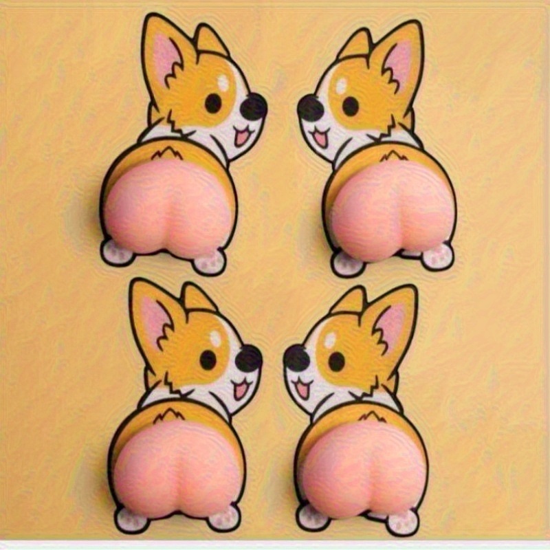 - 4個セット ステッカー ぷにぷにお尻 コーギー 犬 シール 6cm シリコン 振り向くイヌ 貼り付け スマホ デコ ノートパソコン いぬ t8694