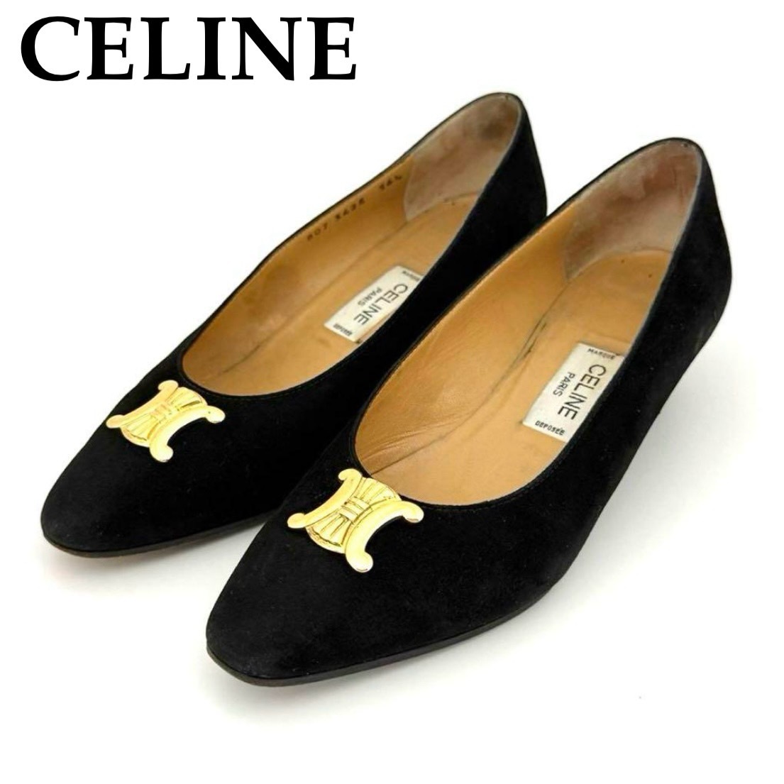 - 美品 CELINE セリーヌ 22.5cm パンプス スエード トリオンフ金具 黒 ブラック 靴 シューズ レディース