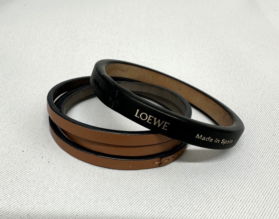 - LOEWE ロエベ レザー 3連 ブレスレット バングル アクセサリー 2点セット ブラック系×ブラウン系 FD8852