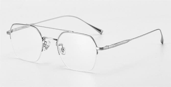 - 1円!新品!ハーフリム メガネフレーム 金属 度数なし 伊達メガネ 男女兼用 ファッションシルバー