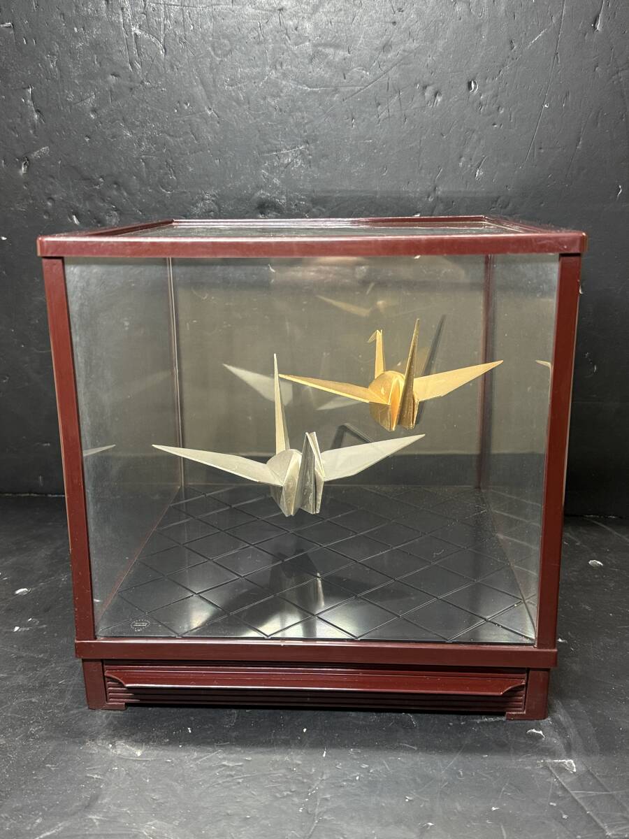 > ★コレクター必見 尚美堂 金属工芸 折り鶴 金色 銀色 金メッキ 銀メッキ アクリルケース 引出し付 ビンテージ レトロ コレクション GT464