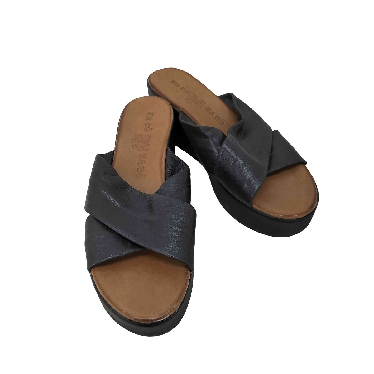 - cava cava(サヴァサヴァ) 本革 レザー クロスストラップ 厚底 ミュールサンダル レディース J 中古 古着 0943