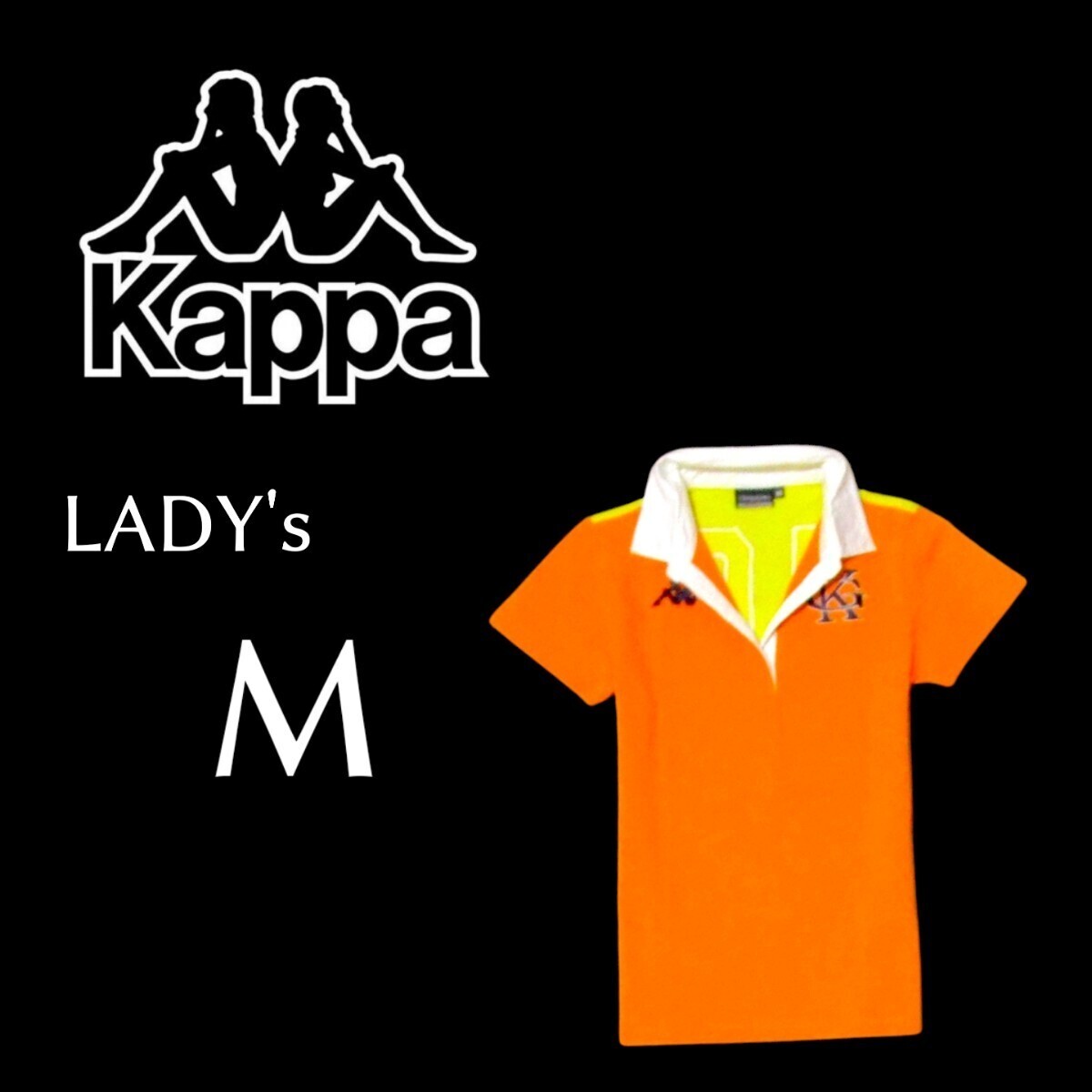- 送料込み レディースMサイズ Kappaカッパ 半袖バイカラーポロシャツ オレンジ 黄色