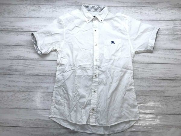 > バーバリー ブラックレーベル BLACK LABEL BURBERRY トラッド チェック切替 半袖ボタンダウンシャツ 三陽商会記載あり メンズ 2 白