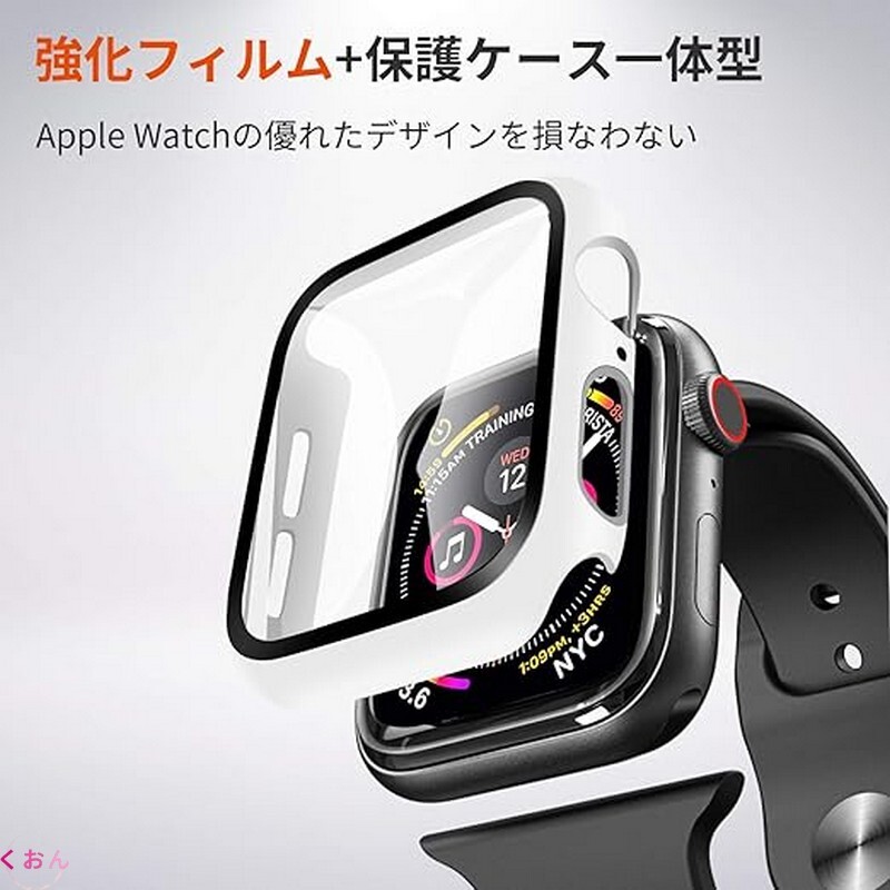 - ホワイト 44mm 枠 PC + 強化ガラス 一体型 全面保護 アップル ウォッチ Apple Watch SE3 耐衝撃 全面保護 ケース カバー