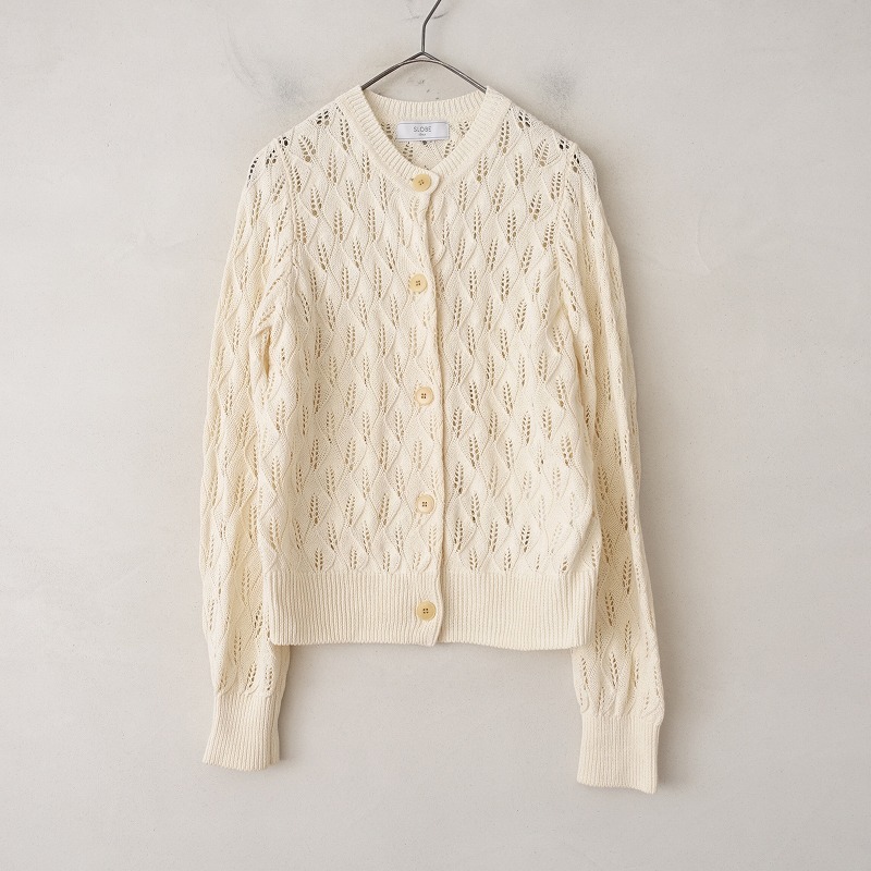 - スローブイエナ SLOBE IENA *ペーパーコットンニット透かし編みカーディガン*エクリュ(33-2509-32)【72I52】