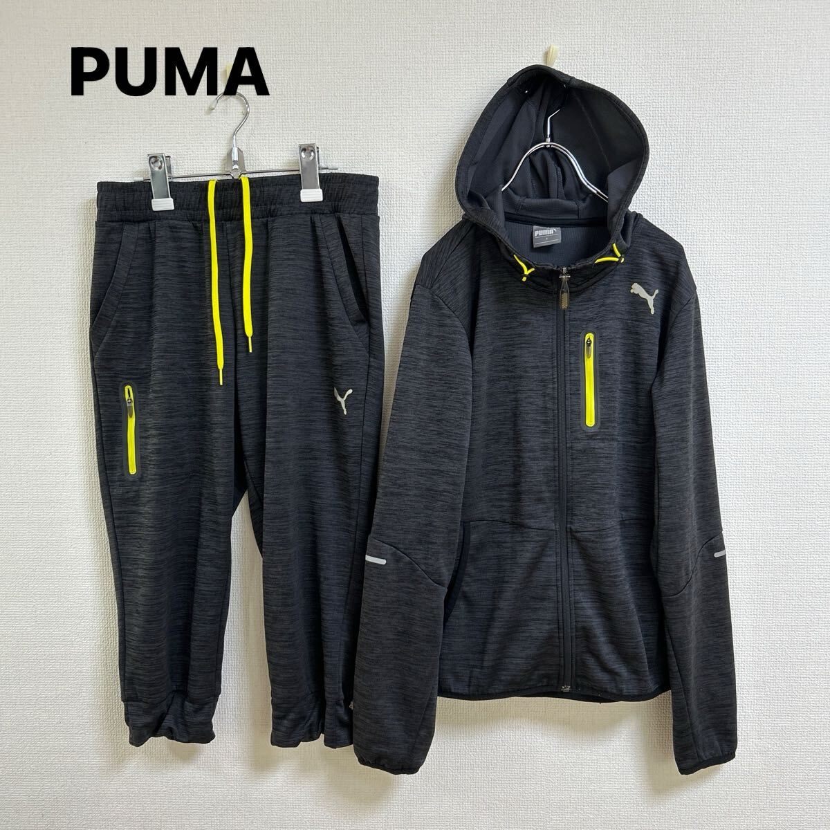 > PUMA プーマ フード付きジャージ上下セット セットアップ サイズ上S・下M(七分) ストレッチ ジャージ ダークグレー/イエロー 蛍光