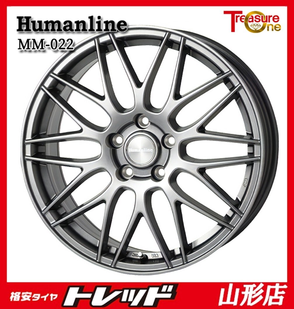 > 山形店 新品 アルミホイール 4本セット ヒューマンライン MM-022 18インチ 7.5j 5H114.3 +48 ダークグレー リーフ