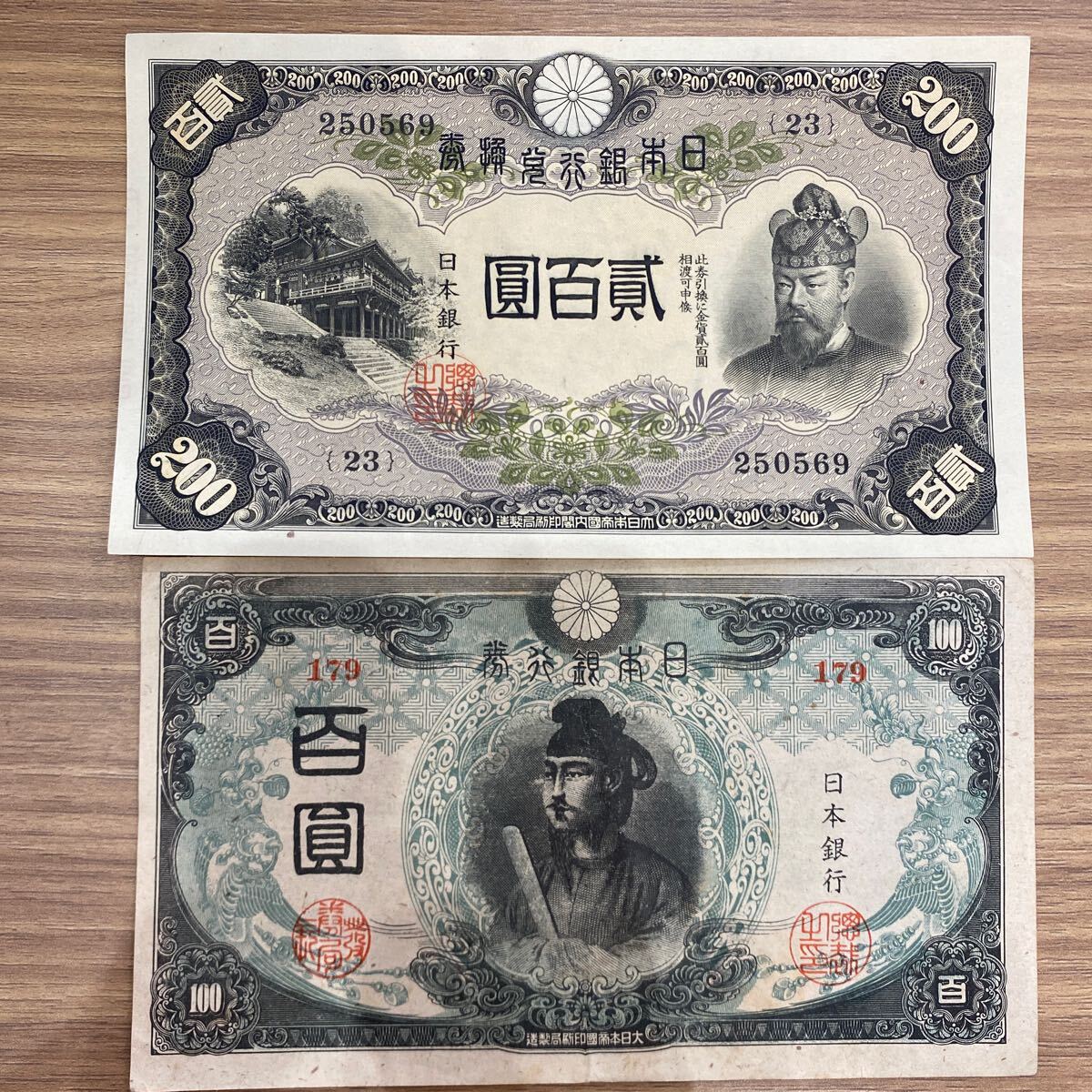 - 古紙幣 旧紙幣 百圓紙幣 貳百圓紙幣 紙幣日本銀行兌換券 日本銀行券 古札 古銭 100円 200円 聖徳太子 藤原鎌足 コレクション 2枚