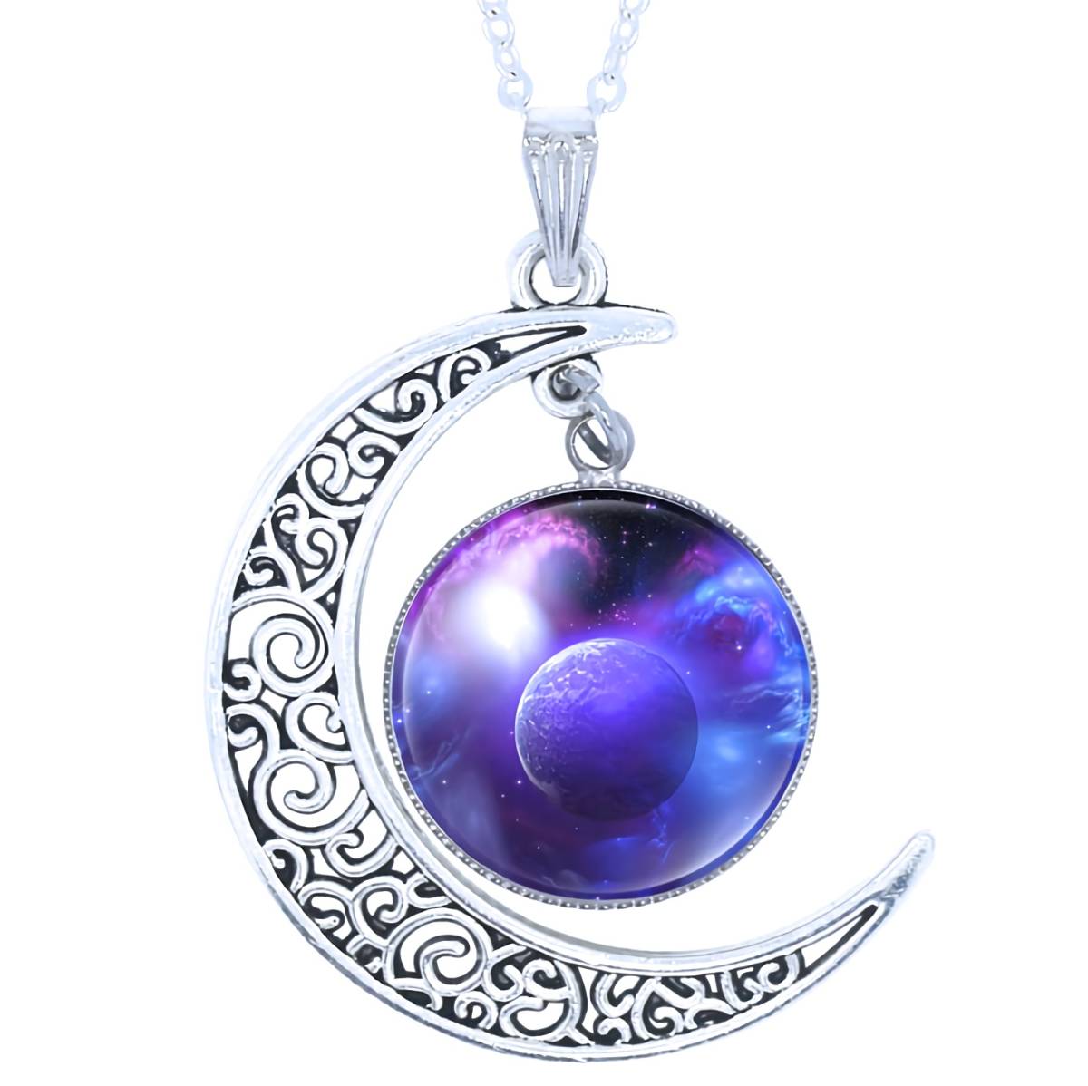 > 新品1円~★送料無料★宇宙の銀河 惑星の青紫フレアギャラクシープラチナ仕上925シルバーネックレス 誕生日プレゼント連休秋ギフト国内発送