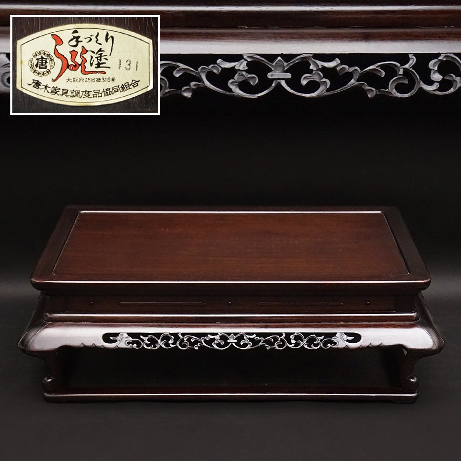 > 大阪唐木 手づくりうるし塗 国産品 唐木 花梨 花台 唐物 唐木黄花梨 紫檀 彫細工造 長方花台 盆栽台 香炉台 飾台 時代 骨董 木製 古美術品