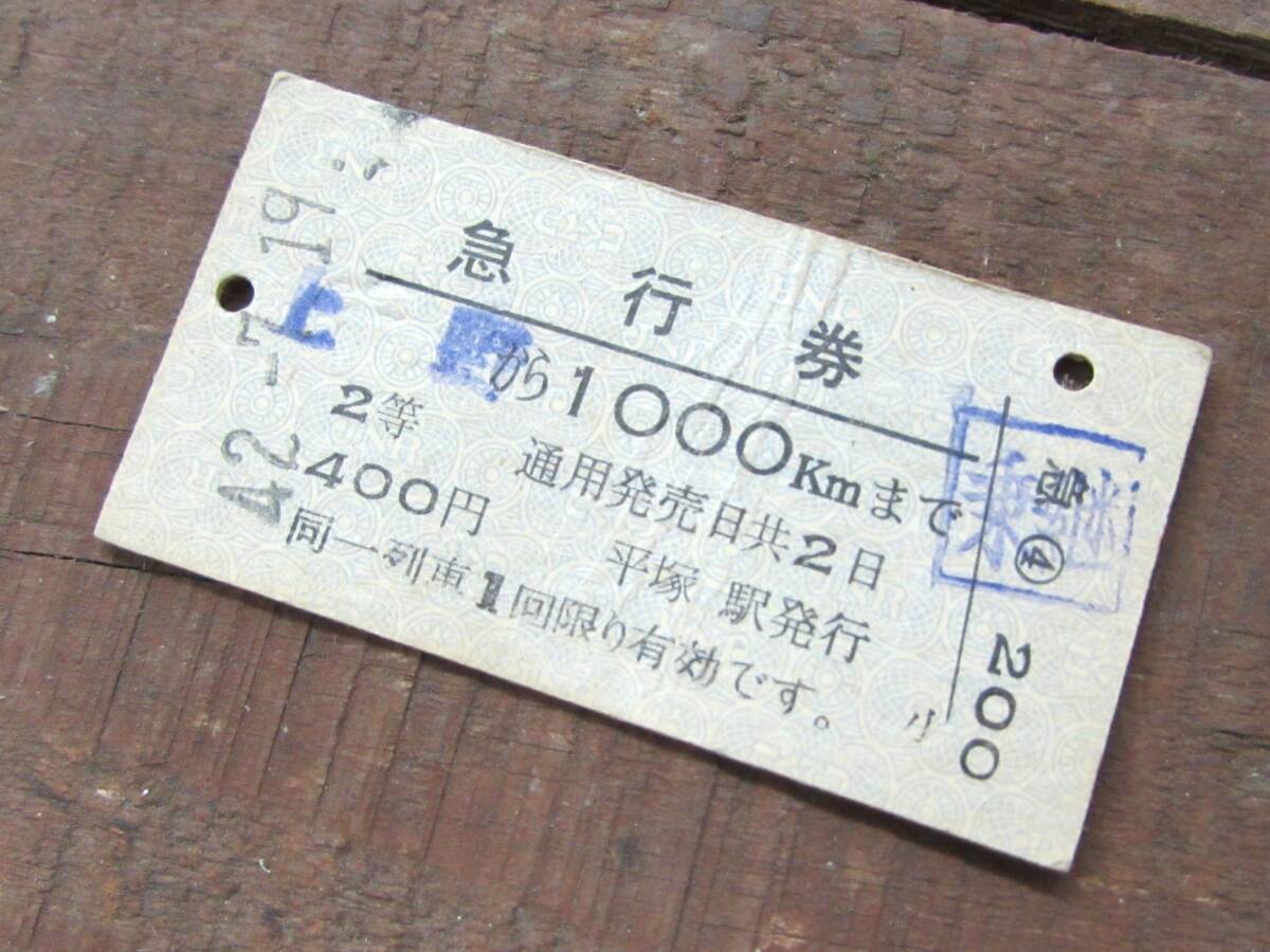 - 切符 A型硬券 急行券 2等 昭和42年 上野~1000kmまで 平塚駅発行 400円 国鉄 東京都 レトロ 15