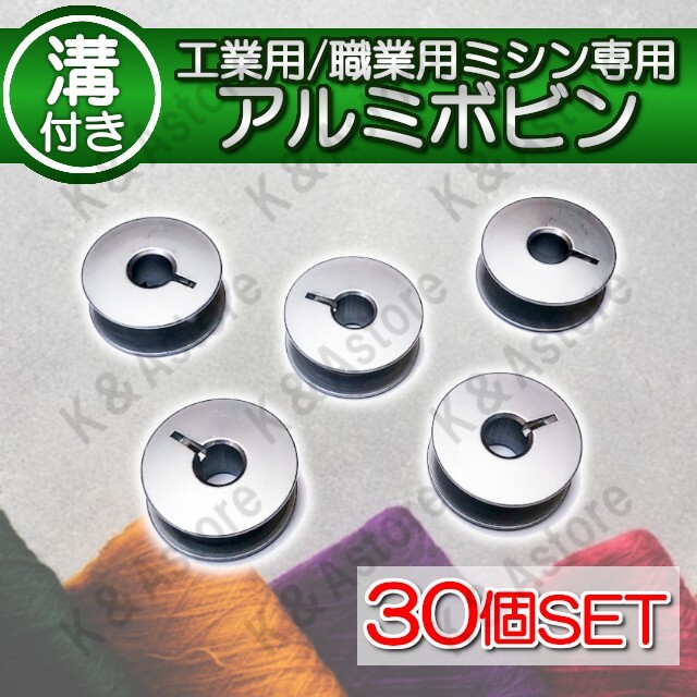 > アルミボビン 溝あり 溝付き カットタイプ 職業用ミシン 工業用ミシン 本縫い 縫製 カット入り 汎用 ミシンアクセサリー ミシン用品 30個