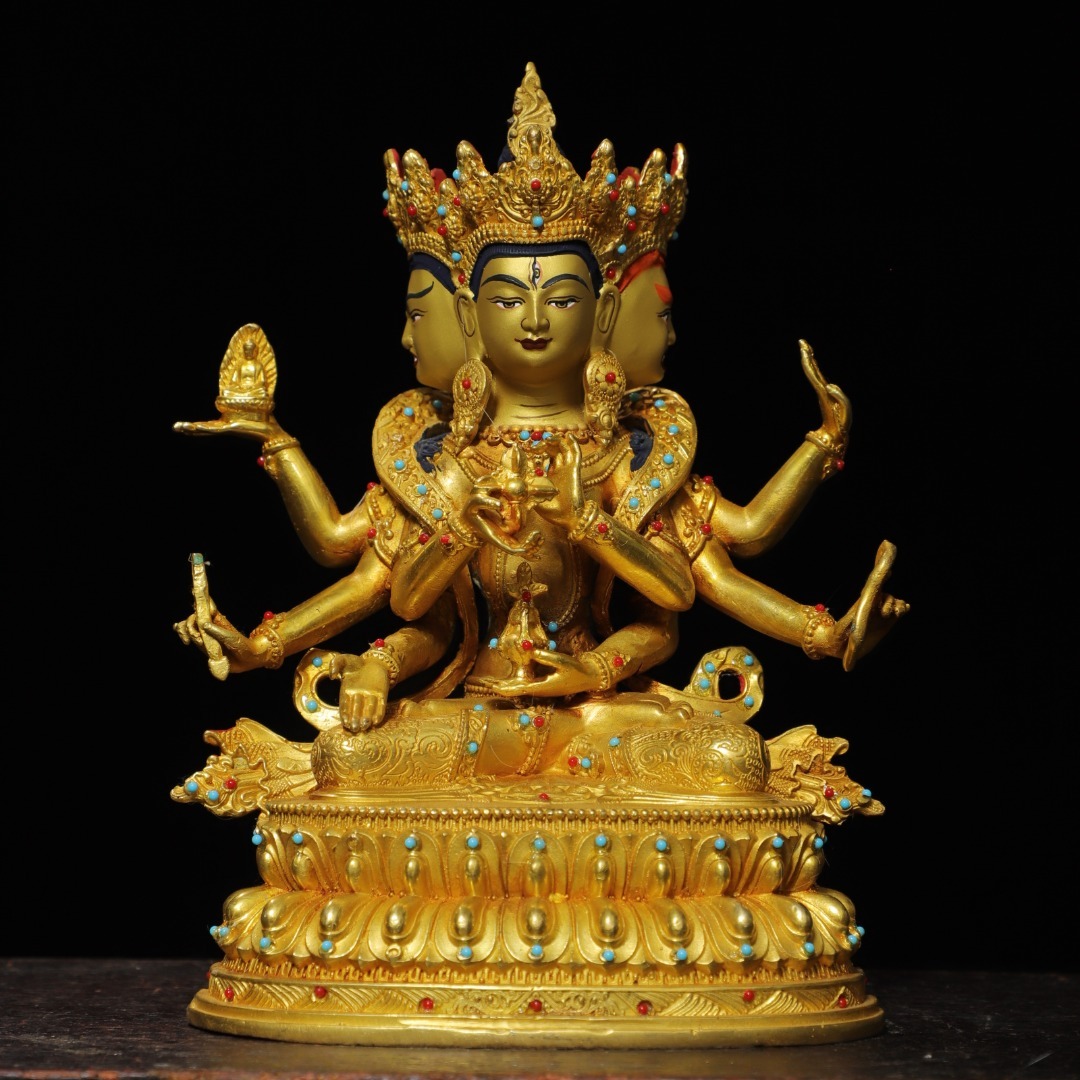 - 『館蔵珍品 銅製 描金 彩繪 尊勝仏母 置物 賞物』稀少珍蔵品 古賞物 貴重物品 収蔵品 中国古美術 時代物 古董品