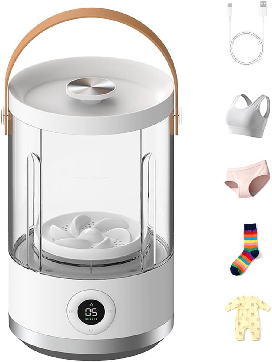 - Hirameki ミニ洗濯機 小型 USB充電 ポータブル洗濯機 防水設計 軽量 革ハンドルデザイン 下着・ベビー服・靴下専用 日本語説明書付き