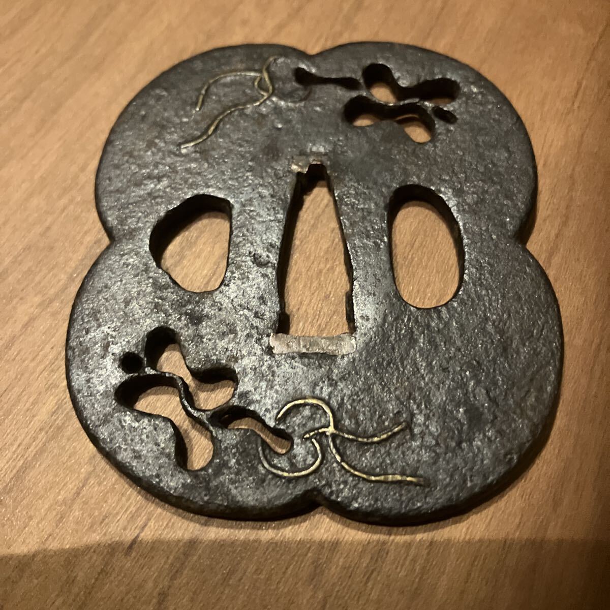- アンティーク 蚤の市 骨董 JAPAN サムライ 侍 武具 刀 刀装具 軍配図 象嵌 鍔 つば 日本刀 年代物