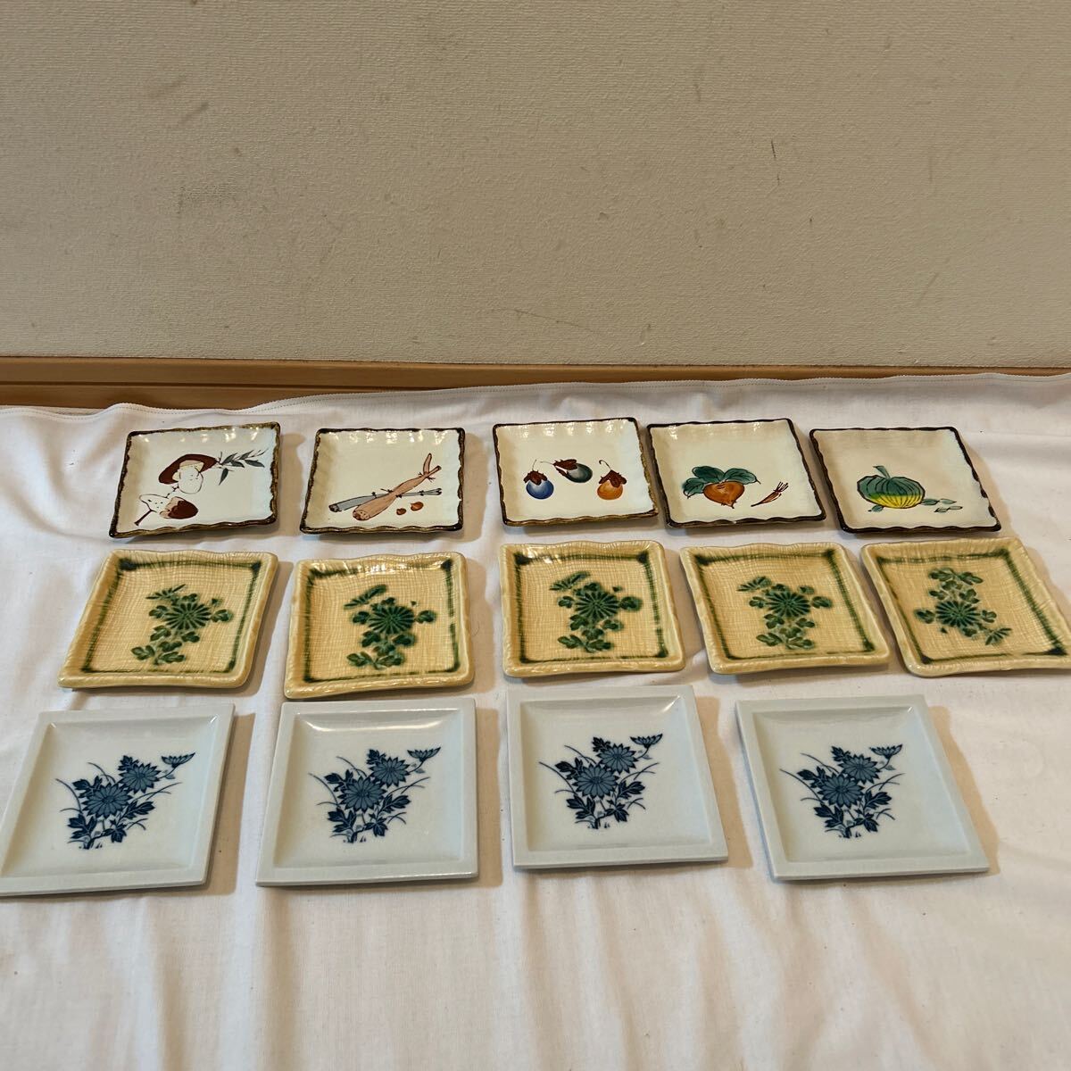 > 【美品】角皿 長方形 和食器 野菜柄 花柄 小皿 陶器 14点 セット まとめ サイズ 約12cm 現状品含む