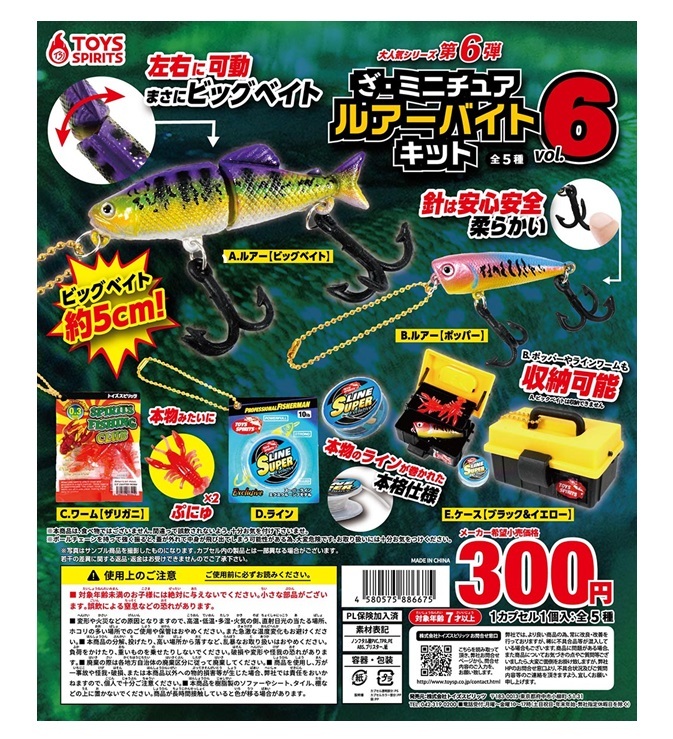 - トイズスピリッツ ざ・ミニチュア ルアーバイトキット vol.6 全5種セット カプセルトイ ガチャガチャ 新品