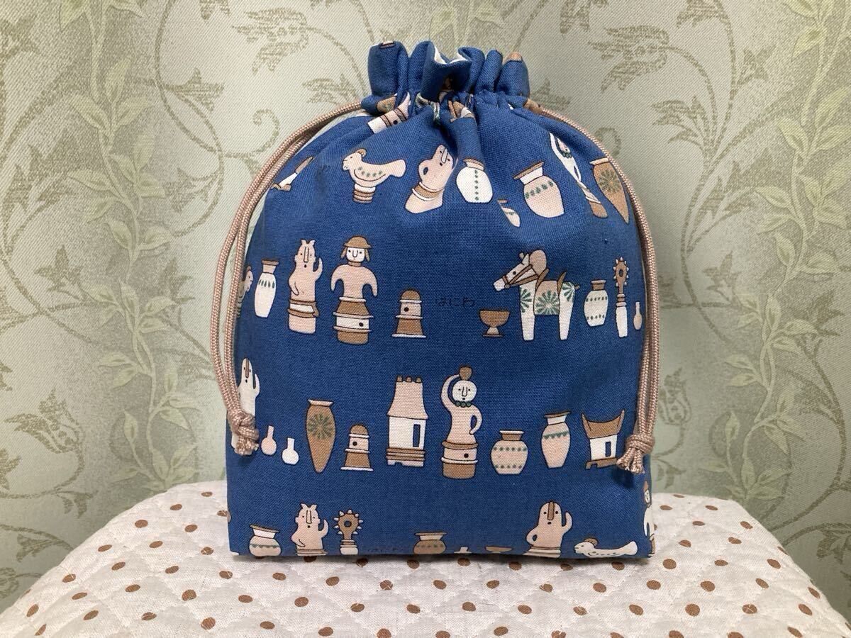 - 巾着袋 巾着 埴輪 はにわ 土器 ハンドメイド マチあり