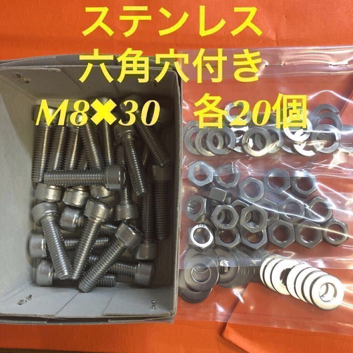 > ★送料込★ステンレス 六角穴付きボルト M8×30 ナット・平ワッシャー・スプリングワッシャー 各20個 ステンキャップボルト