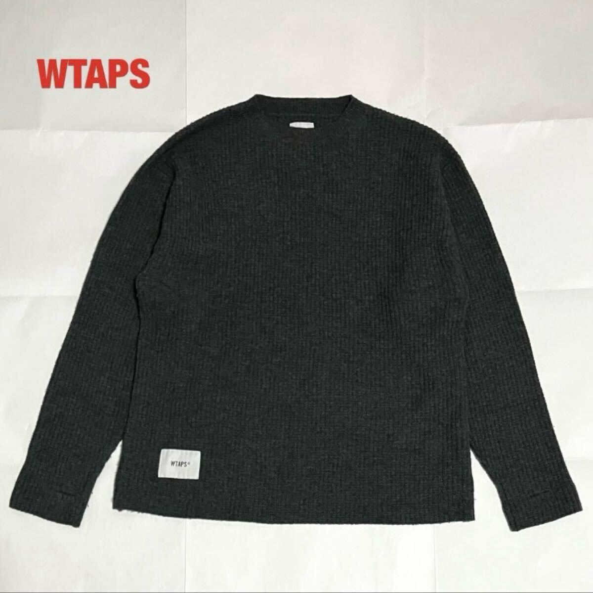 - 【人気】WTAPS ダブルタップス WAFFLE 01 SWEATER/WOOL ワッフルニット クルーネック ロゴデザイン ユニセックス 202MADT-KNM02