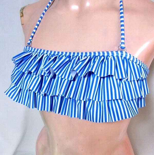 - ★☆ブルー白ストライプフリル付きビキニ水着のブラ☆★