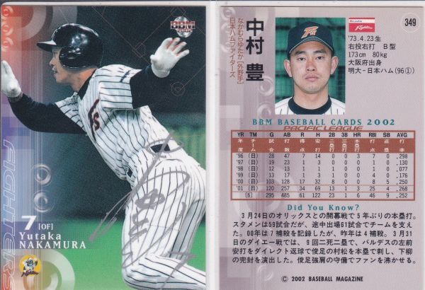 > ●2002BBM/1st 【中村 豊】 シルバーサイン No.349:日本ハム R2