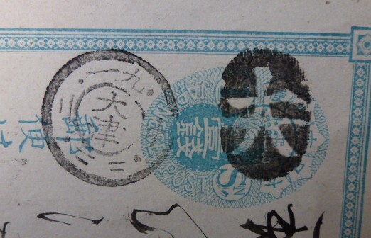- 珍品 小判1銭はがき 大津ボタ印 19.7.22.ニ 使用済 美品 JPA-130-1-8