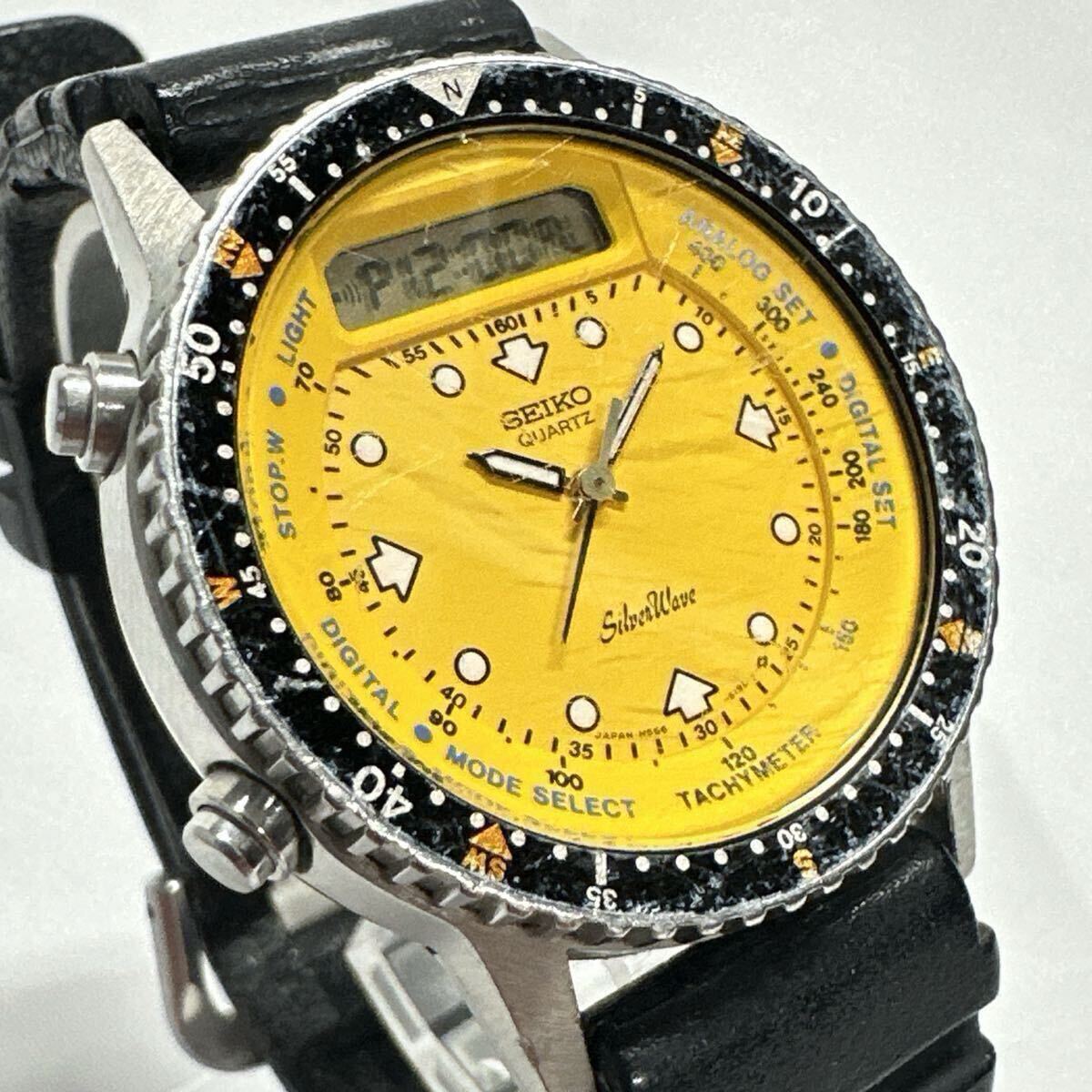> 動作確認済 稼働 SEIKO セイコー 腕時計 アクタス シルバーウェーブ H556-510B SS QZ クォーツ イエロー文字盤【1251】