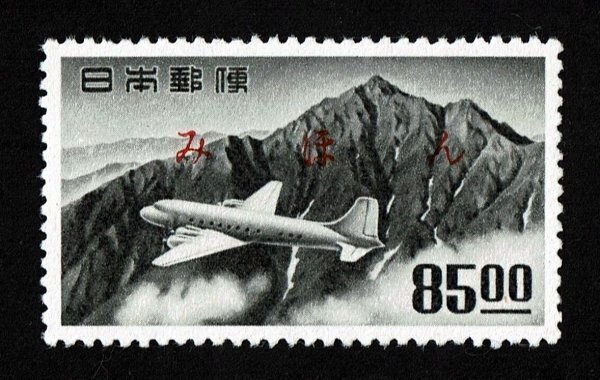 - P310■【みほん字入り・糊落ち】1952年 航空切手 立山航空(銭位) 85.00円■希少・美品