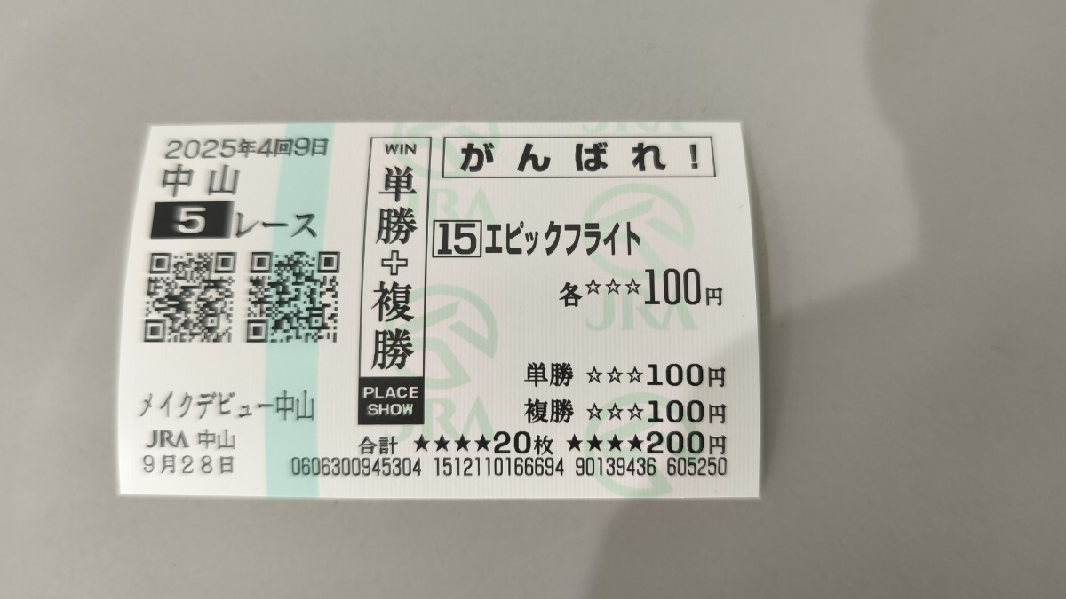 - メイクデビュー中山 エピックフライト 現地がんばれ馬券 匿名発送