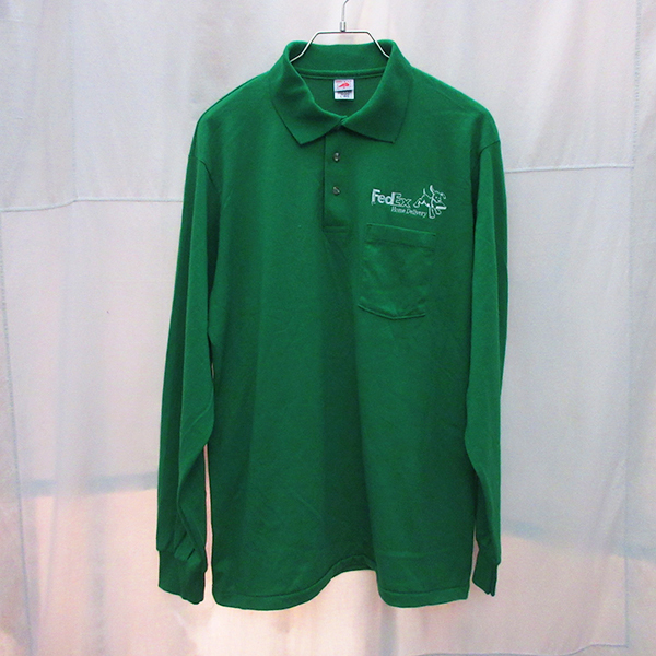 > USA製■ FedEX フェデックス RED KAP レッドキャップ 長袖ポロシャツ L スタッフ ユニフォーム ワークウェア 作業着 グリーン 企業