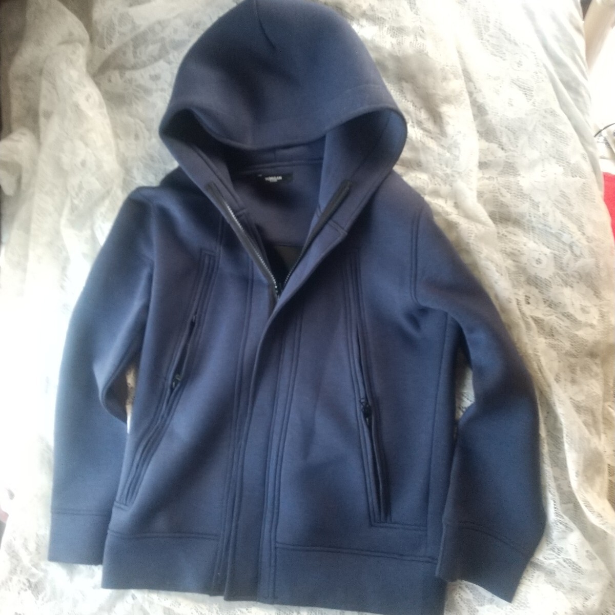 - MORGAN HOMME モルガン パーカー 紺系 ウエットスーツの様なソフトな素材です。ジッパー2個付き激安