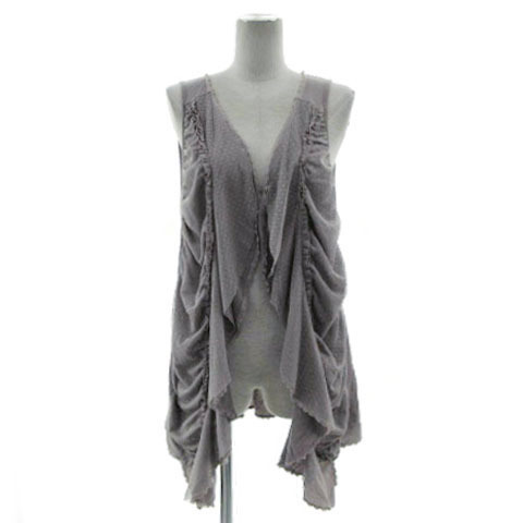 > アクシーズファム axes femme ジレ ベスト チュール レース切替え フリル 羽織り ウエストゴム ブラウン系 グレーブラウン M