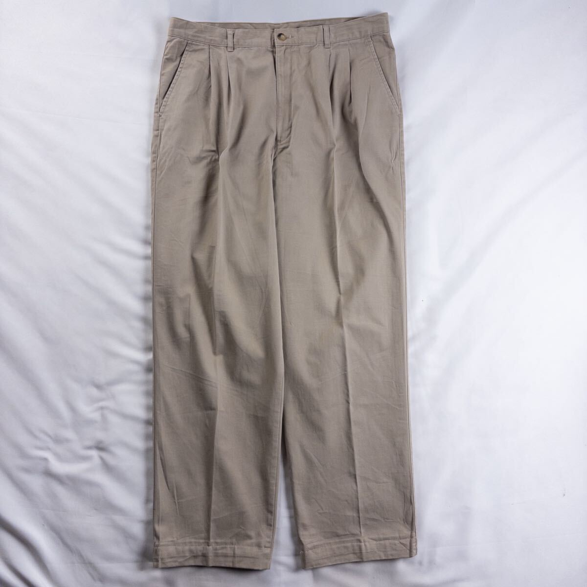 - US Vintage 90s WHITE STAG コットン ツイル ツータック くすみ カーキ ベージュ タロンジップ TALON ワイド チノスラックス トラウザーズ
