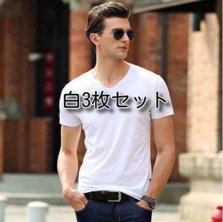 > 3枚セット 白 XL メンズ インナー Tシャツ 接触冷感 夏 Vネック 吸汗速乾 アイスシルク シームレス トップス 薄手 無地 ホワイト