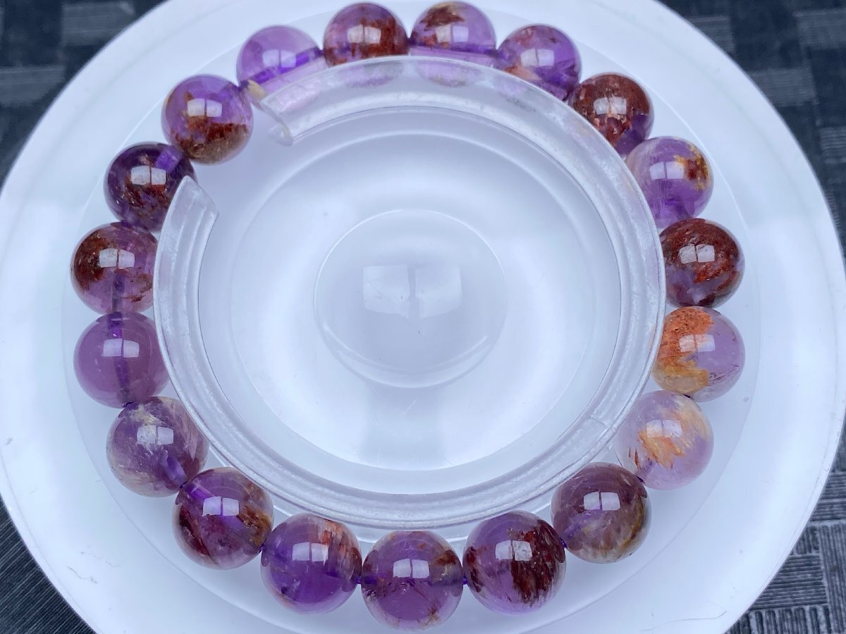 > 即決 0618k840 天然美品★【10Aガーデンクォーツ入りアメジスト】★ブレス 10.5-11mm(新品)