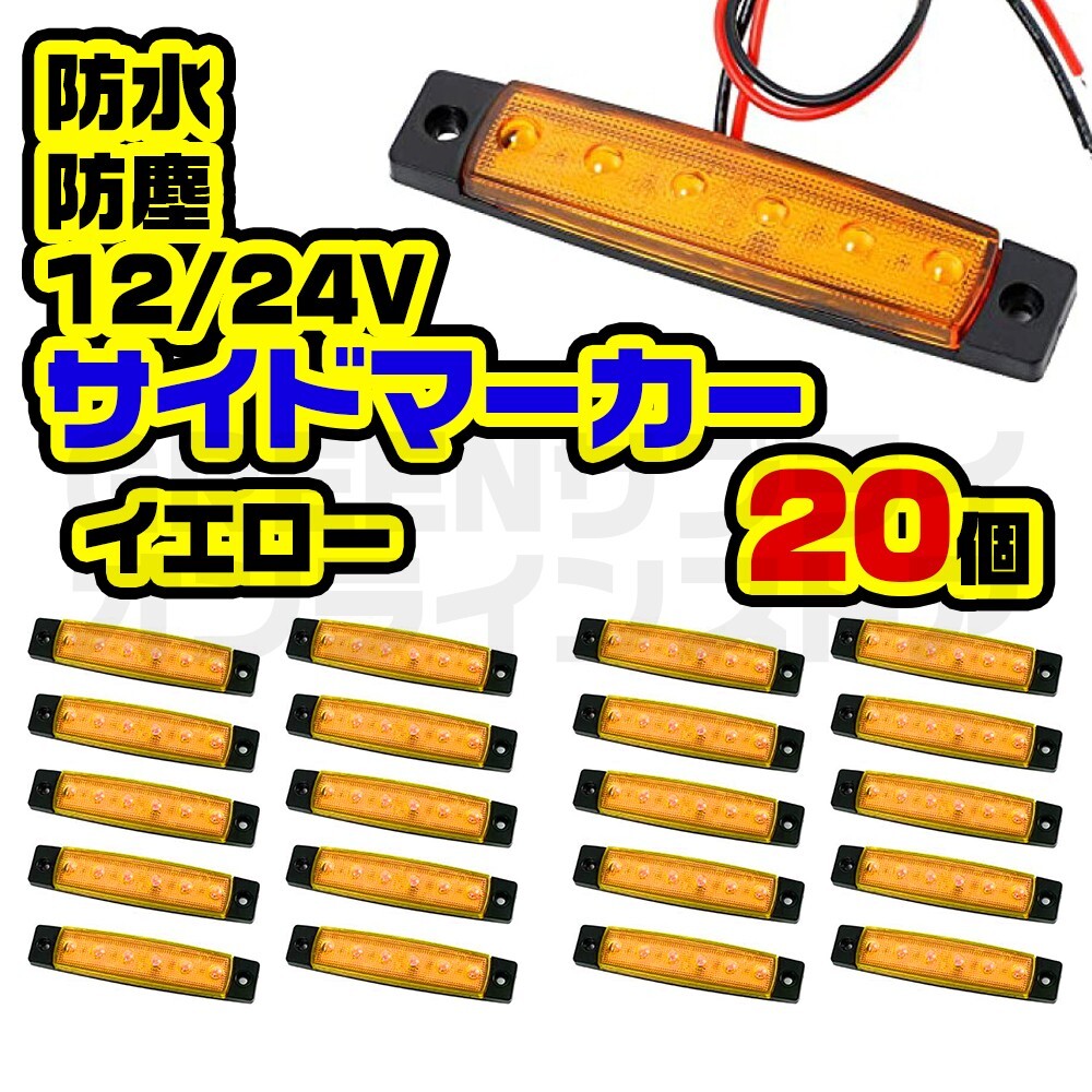- 12V 24V 防水 防塵 LED 6連 サイドマーカー イエロー 20個