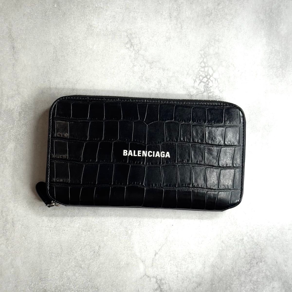 - BALENCIAGA バレンシアガ / エンボスクロコダイルジップアラウンドウォレット 長財布 クロコ型押しレザー ブラック シルバー 594290