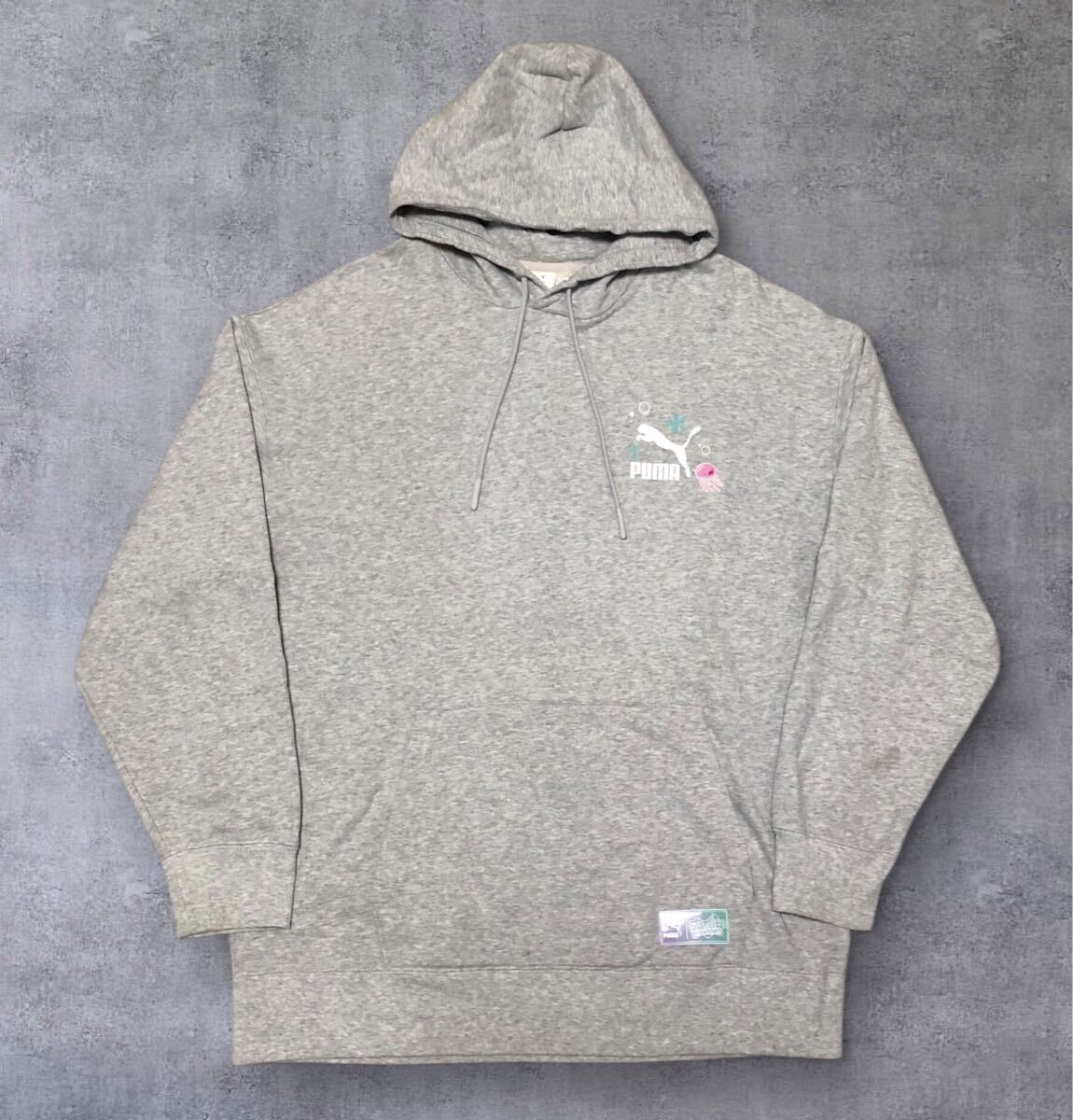 > ■PUMA×SpongeBob プーマ×スポンジボブ■ロゴ キャラクタープリント スウェット パーカー グレー L