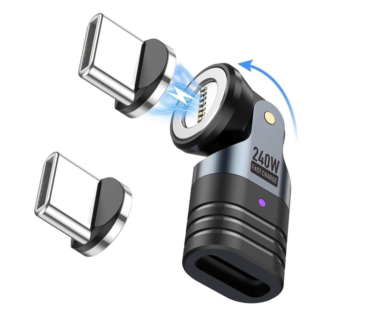 - マグネット変換アダプタ USB-C(メス) to USB-C(オス)240W対応 7Pin 540°回転 Type-Cコネクタ