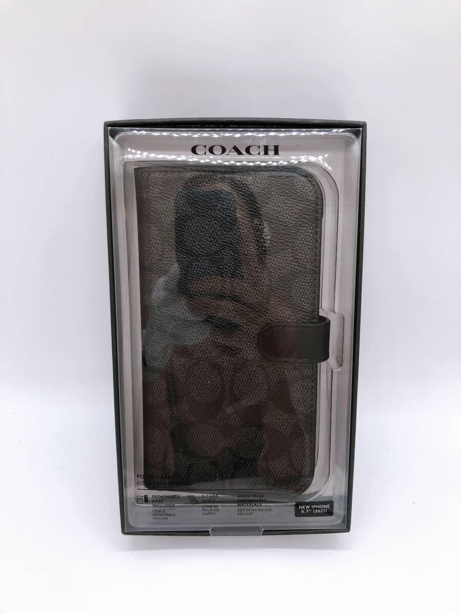 > 【21205】★極美品★COACH コーチ iPhone 13 Pro Max 手帳型 スマホケース おしゃれ 人気ブランド 定番柄 携帯ケース メンズ 男女兼用