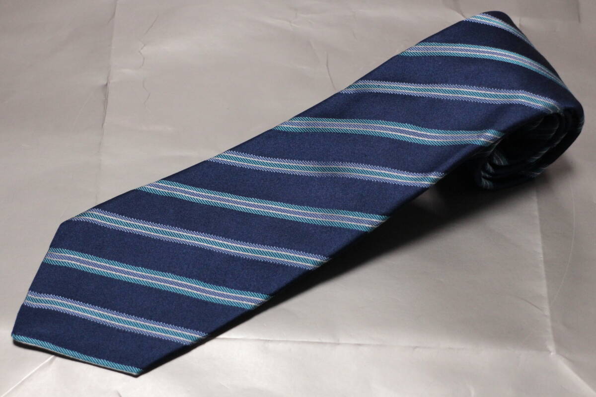 - キートン新品ネクタイ超華麗艶ブルーネイビー*ライトブルー*シルバーレジメンタル極上セッテェピエゲ織柄切返しフルハンドメイド