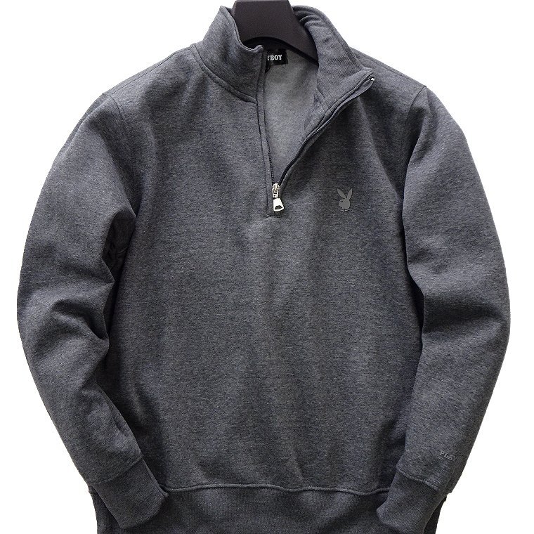 - 新品 プレイボーイ 秋冬 裏起毛 ハーフジップ スウェット M 灰【744015_198_M】 PLAYBOY トレーナー スエット プルオーバー 裏暖