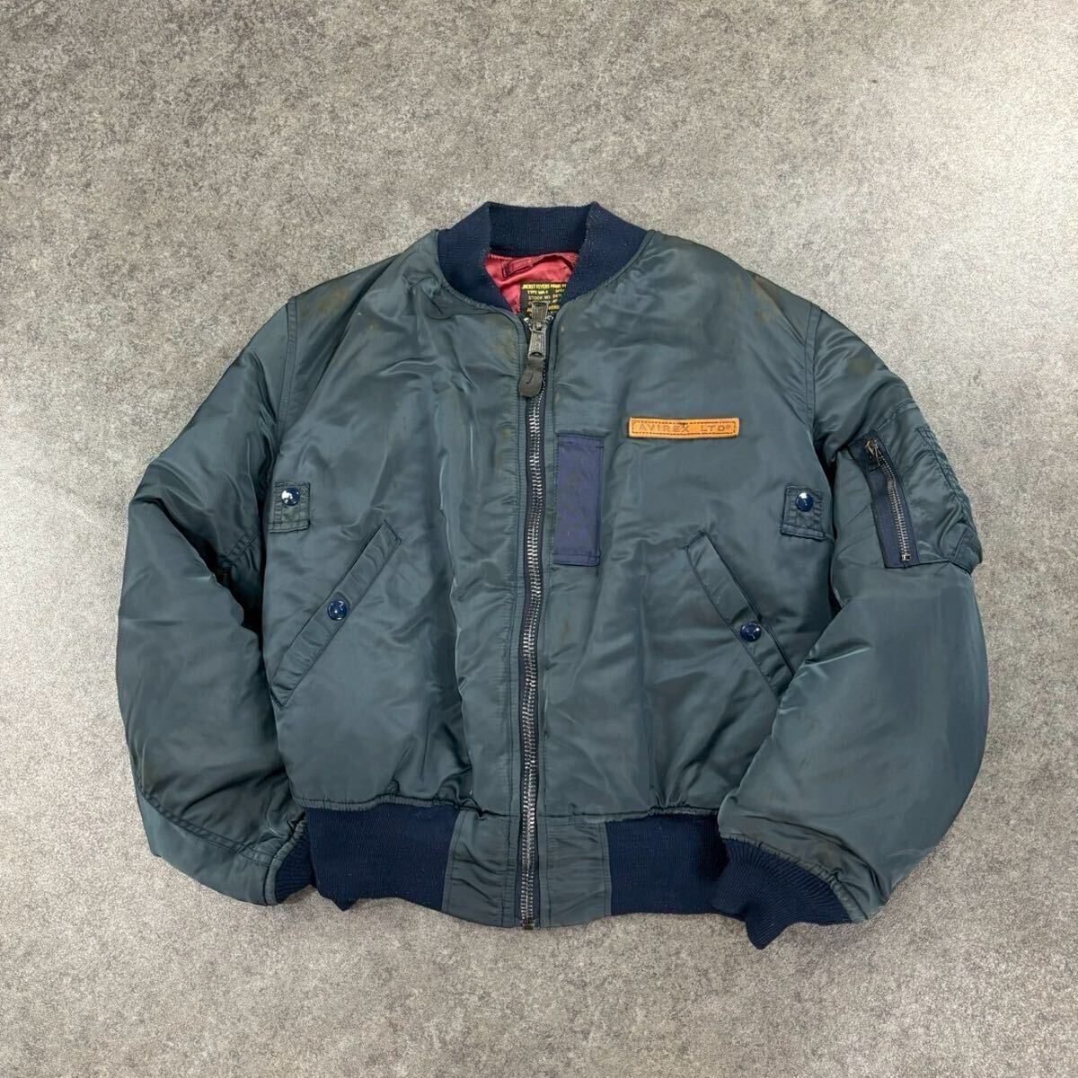 > USA製 AVIREX アヴィレックス MA-1 フライト ボンバー ジャケット ブルゾン EMAR ジップ 紺 ヴィンテージ ビンテージ メンズ 8415-273-3571