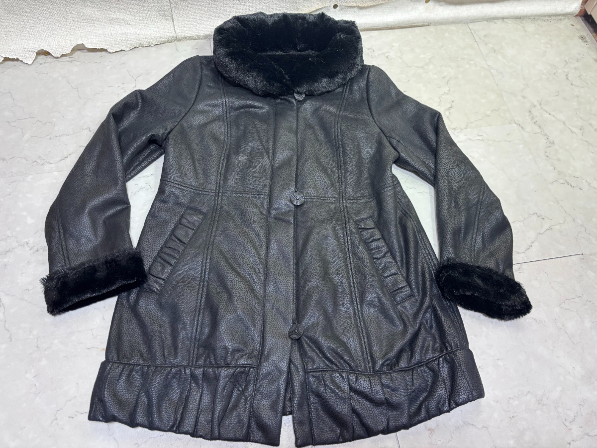 - d4809◆アルテソワArte Soie 裏ボアフェイクレザーコート11黒